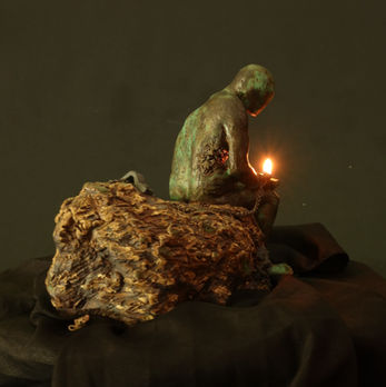 Prometheus, known in mythology for bringing the first fire to warm humankind, was punished for doing so, chained to rock and tormented by an eagle. This sculpture sits in contemplation of the flame.